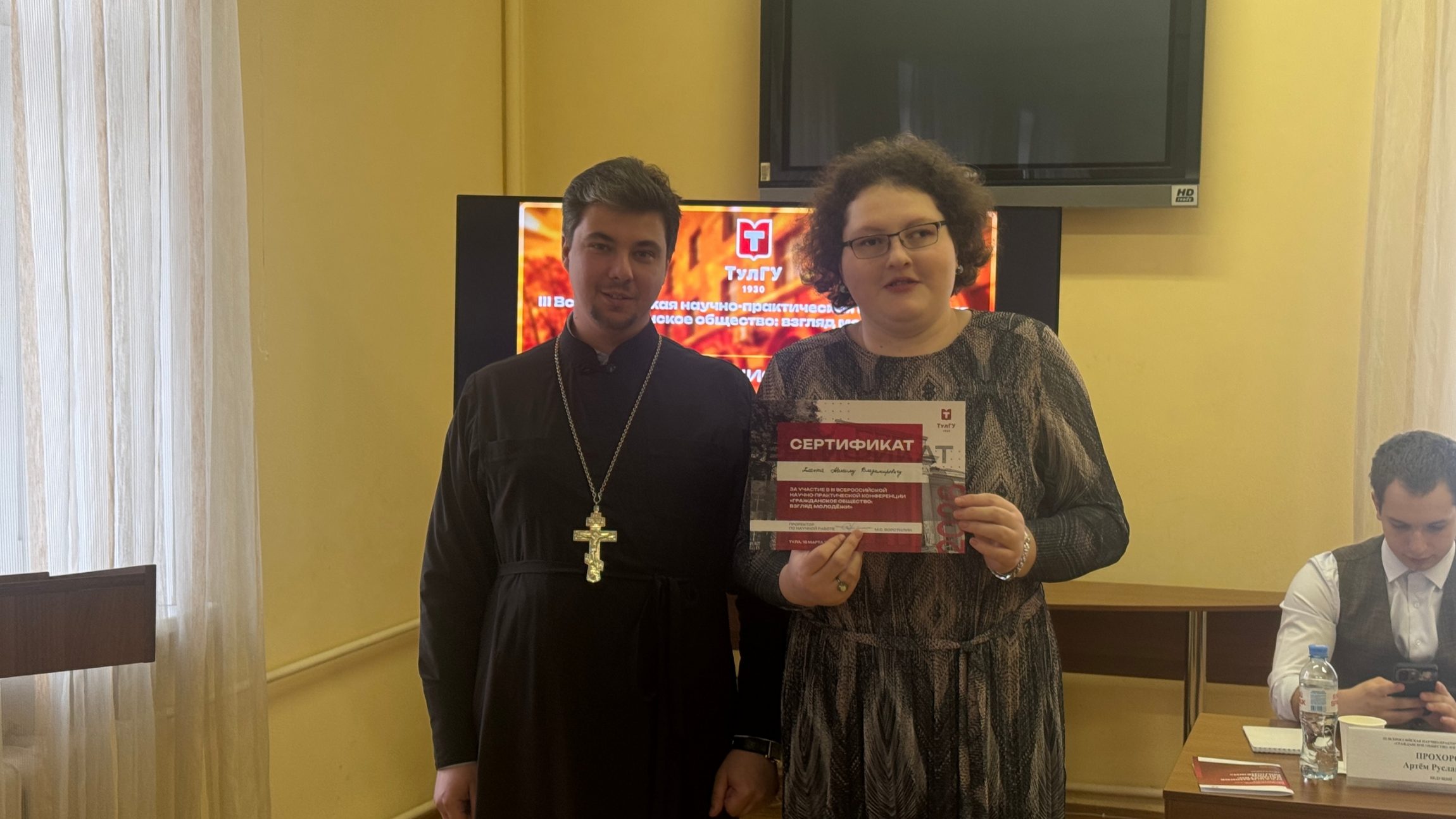 В работе научного форума приняли участие руководитель информационного отдела, старший преподаватель кафедры богословских дисциплин ТулДС иерей Максим Хланта и студент 4 курса ТулДС Иван Никифоров.