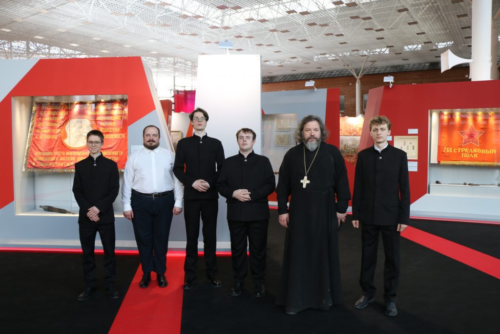Студенты Тульской духовной семинарии во главе с проректором по воспитательной работе протоиереем Михаилом Ключаревым посетили действующие в Туле выставки, посвященные 80-летию Победы в Великой Отечественной войне.