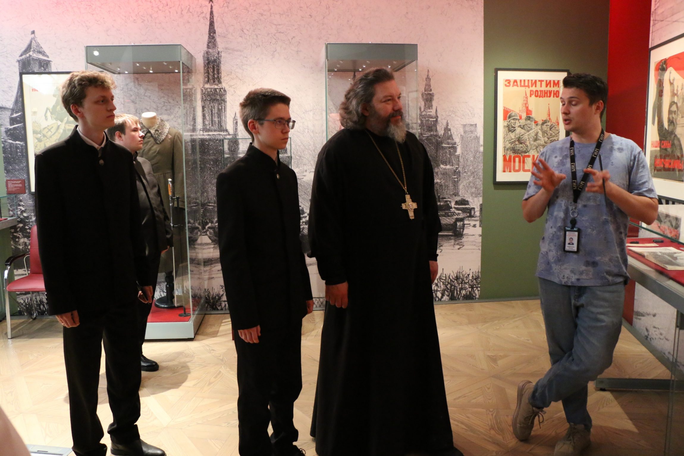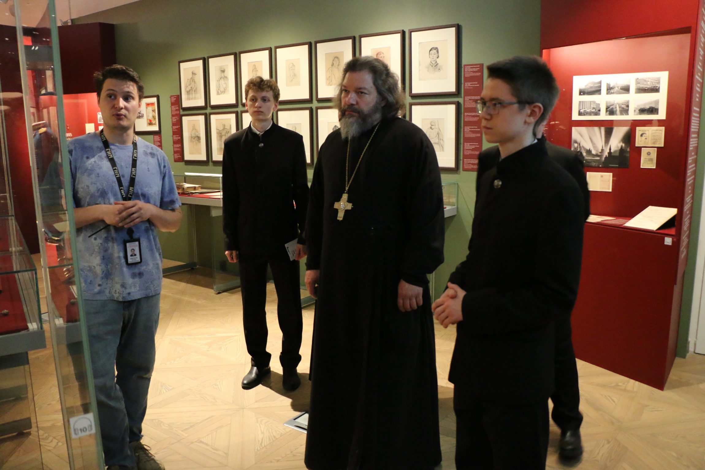 Молодые люди вместе с протоиереем Михаилом Ключаревым внимательно изучили основные тематические разделы: «Тула довоенная», «Начало Великой Отечественной войны и оборона Тулы», «Личные вещи участников обороны Тулы», «Поисковые находки», «Награды 1941 года», «Маршал Василий Иванович Чуйков» и другие.