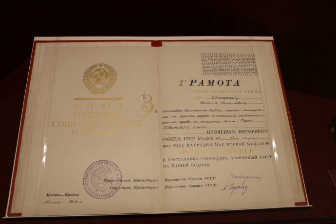 Каждый выставочный экспонат — винтовка, гимнастерка, сохранившиеся письма с фронта или найденные поисковиками гильзы и фляжки — это кусочек истории. И за каждым из них стоит чья-то судьба, которая неразрывно сплелась с судьбой целого народа. Такое, можно сказать, живое восприятие истории, знакомство с подлинными свидетельствами и необходимо молодым людям в наше время, чтобы они сберегли и передали дальше правду о Великой Отечественной войне, о том, что пришлось пережить нашему народу, и какую цену заплатить за Победу над врагом».