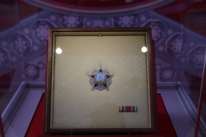 Основу экспозиции составили документы военных лет, личные вещи и награды участников Великой Отечественной войны, художественные памятники из собрания Государственного исторического музея — в общей сложности более 300 экспонатов.